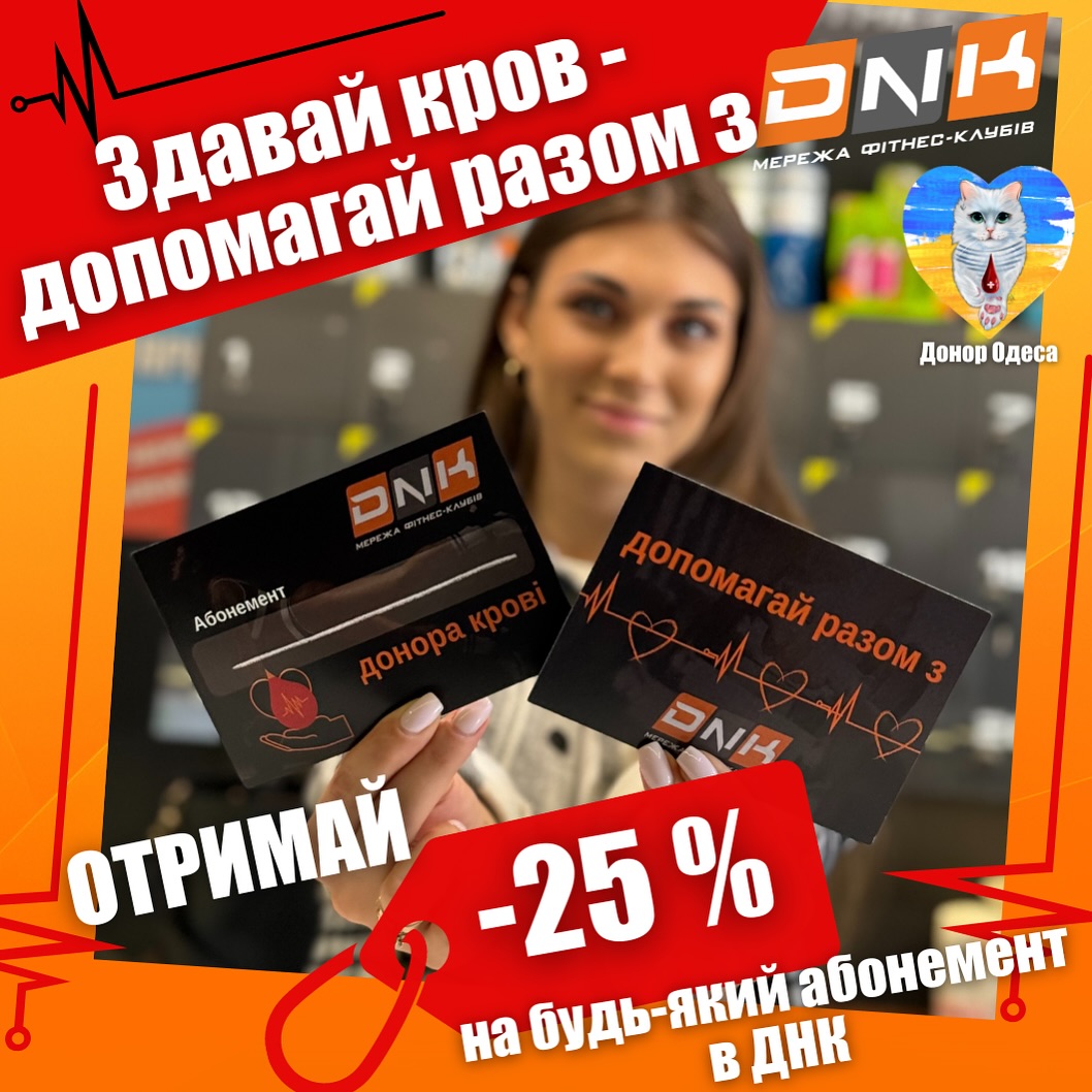 Для заохочення донорів крові спільно з проєктом «Донор Одеса» в мережі фітнес-клубів «ДНК» започатковано корисну акцію — кожен донор може показати на рецепції клубу довідку про здачу крові з медичного закладу та отримати знижку -25% на будь-який фітнес-абонемент.