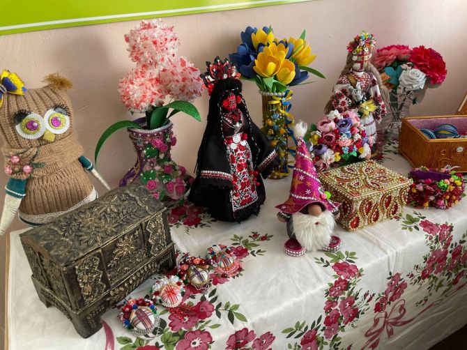 Поруч із простором працює команда волонтерів. Окрім виготовлення сувенірних виробів, вони плетуть маскувальні сітки для наших захисників на передовій.