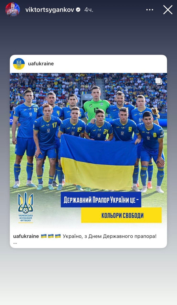 Одна з головних зірок збірної прямо зараз, футболіст Жирони Віктор Циганков, підійшов до привітання стандартно, і поділився з аудиторією постом від УАФ.