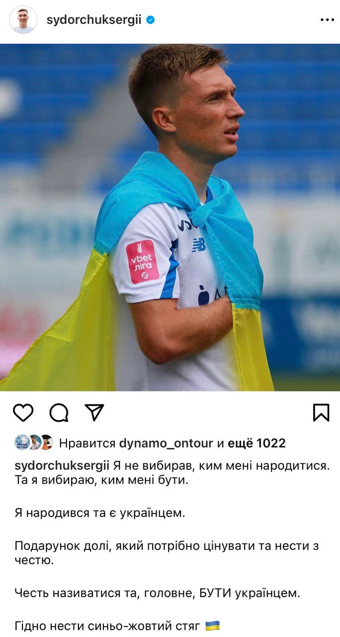 Але найдушевнішим, на мою скромну думку, вийшло привітання капітана Динамо Сергія Сидорчука. Він теж поширив свій власний пост, під яким написав: