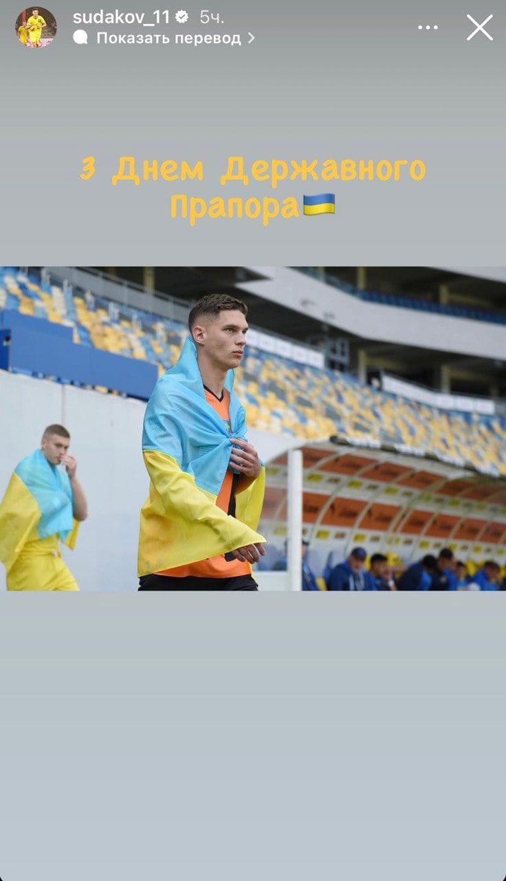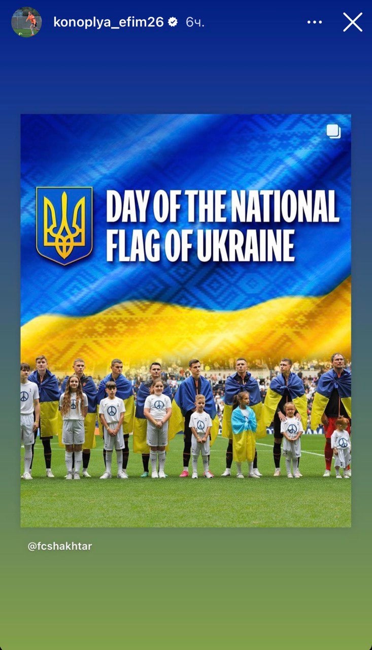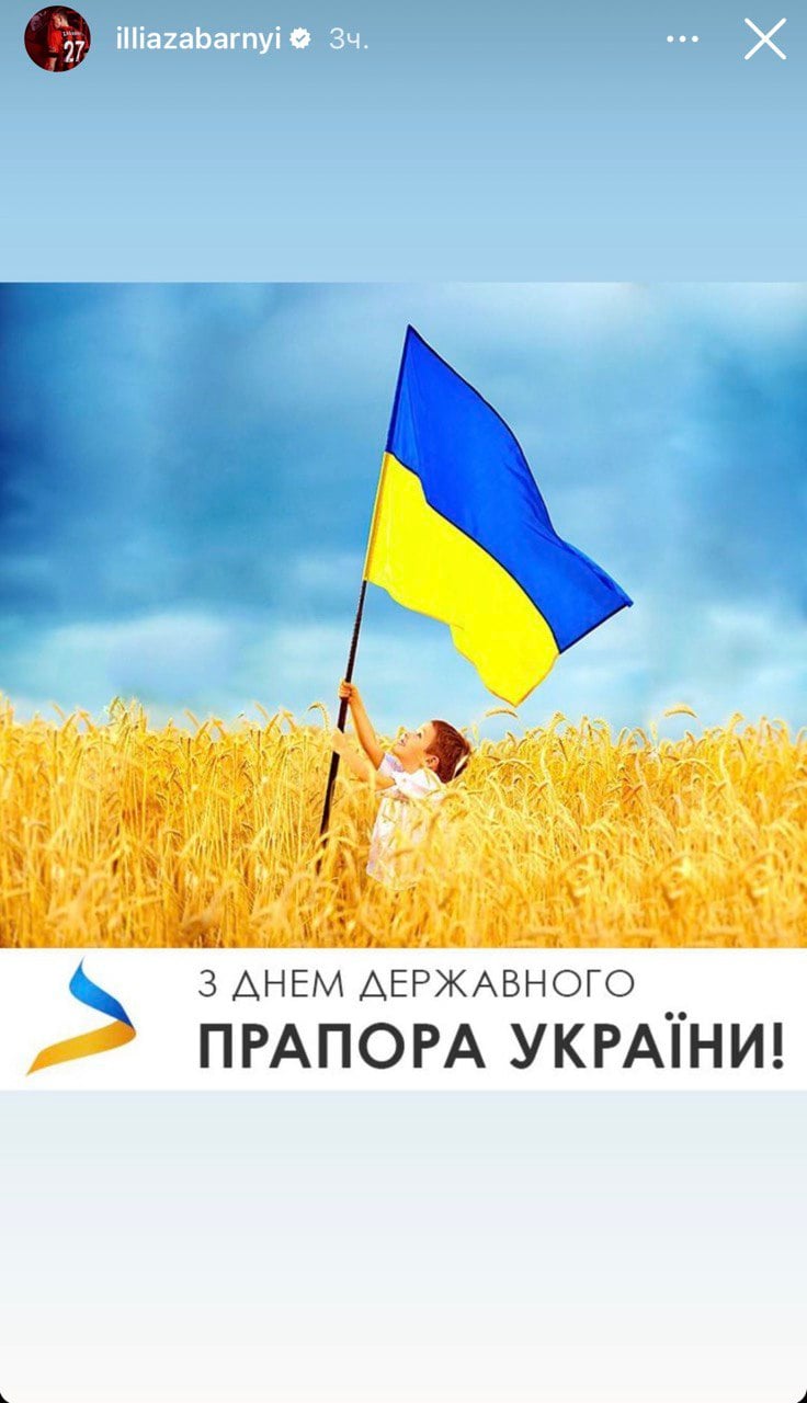 Захисник Борнмута Ілля Забарний також поділився з підписниками зображенням з українським прапором і поздоровленням.