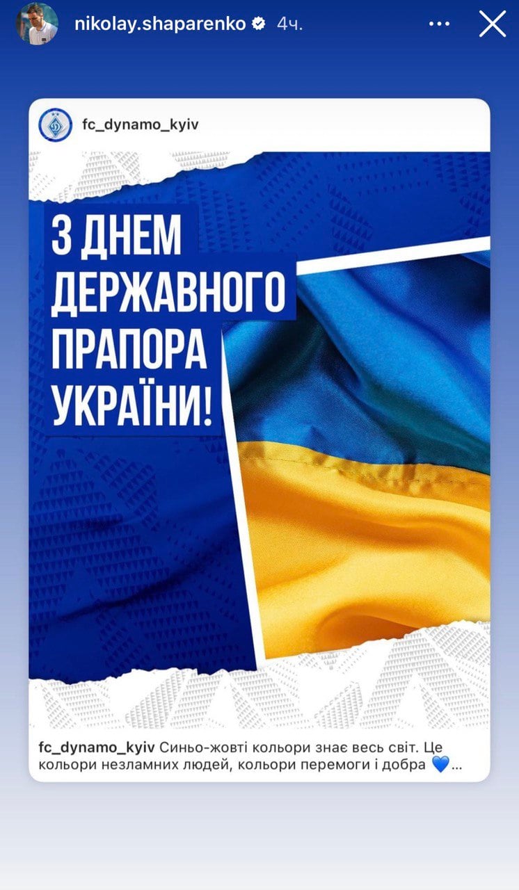 Футболісти київського Динамо Олександр Тимчик, Микола Шапаренко і Андрій Ярмоленко просто продублювали у себе в сторіс пост з привітаннями свого клубу.