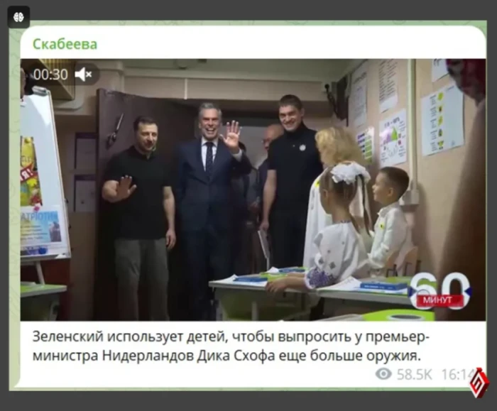 Слід зауважити, що топ-пропагандистка скабєєва навмисно – і це є маніпуляція – не вказала чи не ключовий момент з цього відео. А саме – президент України Володимир Зеленський та прем’єр-міністр Нідерландів Дік Схоф під час відвідин Запорізького ліцею № 71 вітали першачків, які розпочинали свій перший шкільний день у класі, який був облаштований… в укритті!