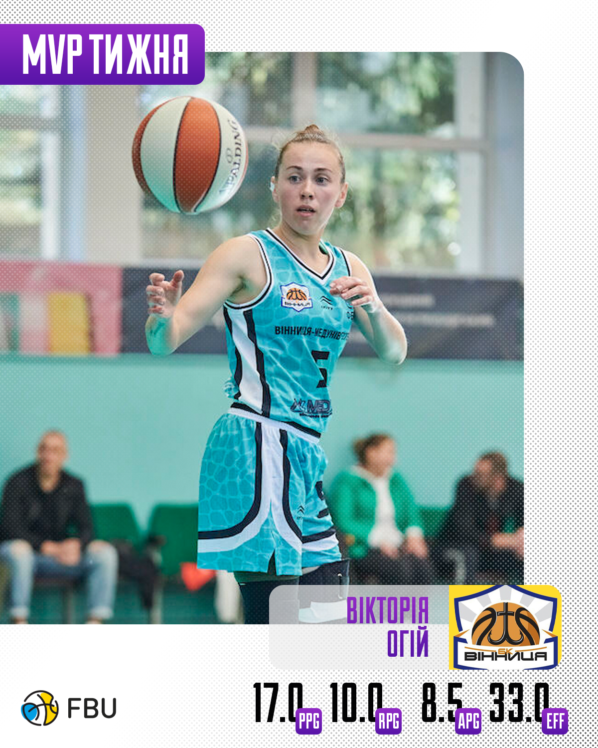 Вікторія Огій (Вінниця-МедУніверситет) – 17.0 очка, 10.0 підбирання, 8.5 передачі, 5.0 перехоплення. РЕ 33.0