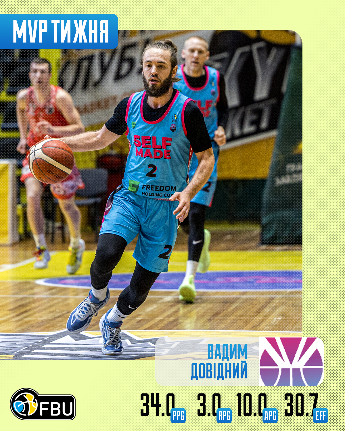 Вадим Довідний (Селф Мейд) – 34.0 очка, 3.0 підбирань, 10.0 передач. РЕ 30.7