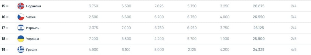 Виглядає сумно, чи не так? Звичайно, у нас є ще майже повний євросезон, щоб врятувати ситуацію, але давайте подивимося, наскільки це реально. Зараз Україна 18-та з балом 25,800. Наші сусіди зверху – Ізраїль (26,125), Чехія (26,550) і Норвегія (26,875).