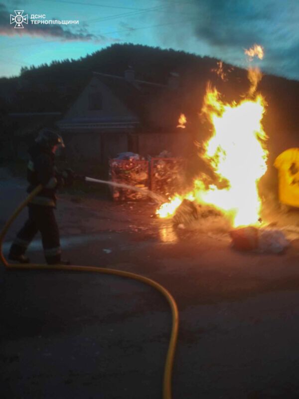 “Сьогодні о 06:47 в м. Кременець по вул. Ольжича виникла пожежа сміттєвого бака. Для ліквідації наслідків події залучено черговий караул 5 ДПРЧ м. Кременець. Причина та збитки встановлюються. Ніхто з людей не постраждав”, – йдеться у повідомленні.