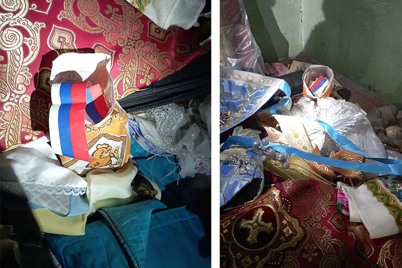 «Днями у храмі ми випадково знайшли ще й російські прапорці. Вони випали із серванту, де зберігались різи. Звісно, ми передбачали, що подібне може бути у приміщенні. Адже священик Євгеній Воробйов пишається тим, що його син навчається у Росії у той час коли наші хлопці гинуть, стримуючи російських окупантів, а цивільне православне населення у прифронтових містах і селах постійно потерпає від ракетних ударів та артилерійських снарядів росіян», – зазначив Михайло Бондаренко.