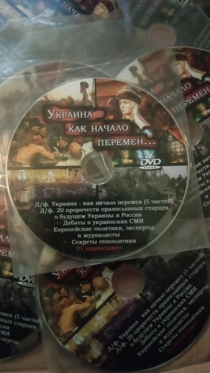 Між іншим, «російський скарб» у ладижинському храмі не обмежився іконами, календарями, літературою та «триколорами». Для кращого засвоювання пропаганди «руського миру» там використовувались і візуальні джерела. Містяни знайшли підбірку DVD-дисків з пропагандистськими фільмами про Росію і «місце» України. Все у стилі Оксани Марченко, дружини зрадника та кума Путіна Віктора Медведчука, якого у 2022-му обміняли…