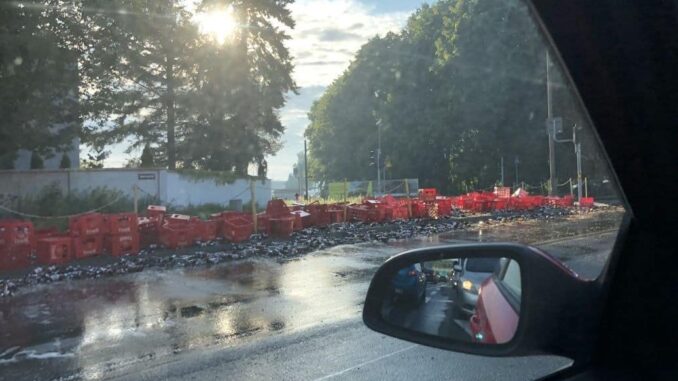 За даними видання, вантаж, який складався з майже 7 000 пляшок, не був належним чином закріплений. “Пивна ріка” ускладнила рух транспорту, через що на місце події виїхали екстрені служби.