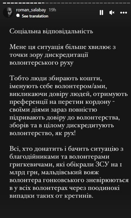 Та найбільше “розірвало” волонтерів. Адже ця ситуація не лише негативно вплине на результати різних зборів для ЗСУ, але й ще більше посилить проблеми з виїздом волонтерів за кордон. Їх і так допитують годинами, а цей час може дуже важливий, якщо десь у Польщі, наприклад, чекає пікап для військових.