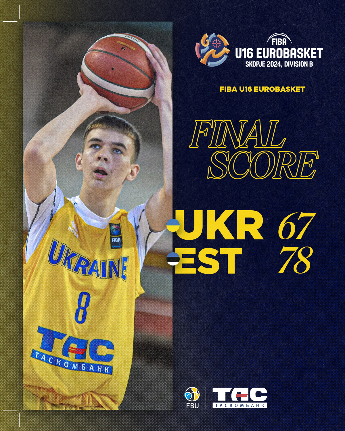 Чоловіча збірна України U-16 поступилася в своєму третьому матчі на чемпіонаті Європи, програвши збірній Естонії з рахунком 67:78.