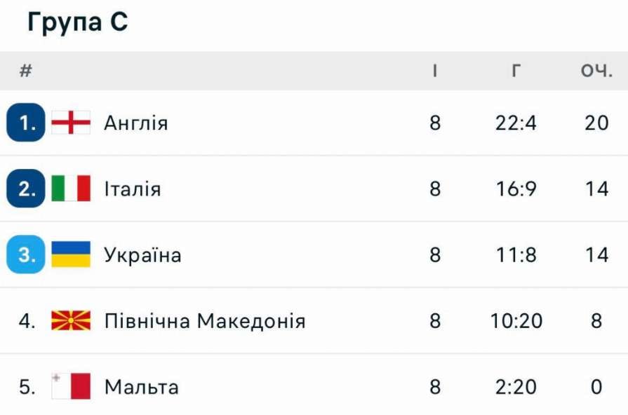 • 14 очок набрала збірна України у відборі Євро-2024. Жодна третя команда з груп, що складаються з п’яти учасників, не змогла досягти такого показника.