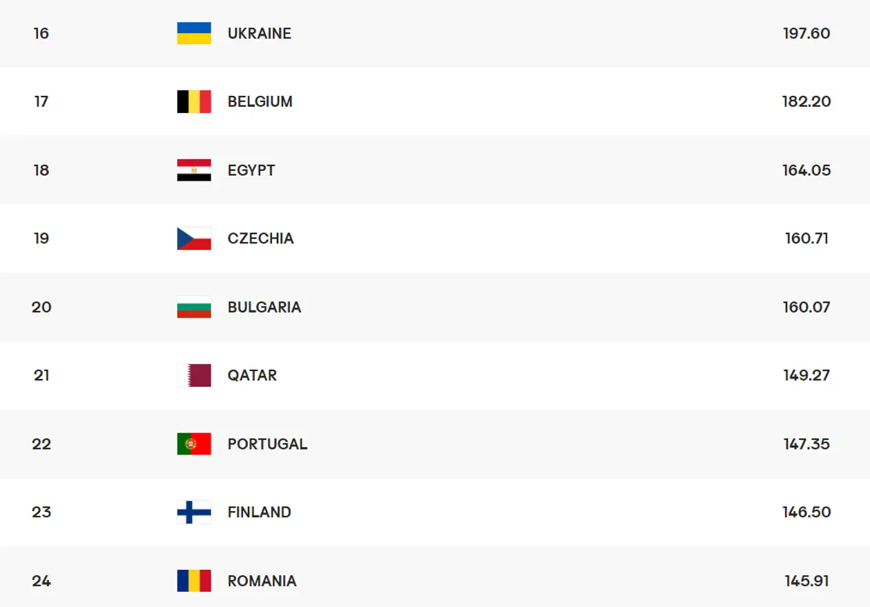 Трохи більше шансів, ніж у єгиптян, у збірної Чехії. Але і там відставання дуже велике, цілих 37 балів. Щоб таке відіграти, потрібно нам все програвати по 0-3, а їм вигравати по 3-0. І то цього не має вистачити.